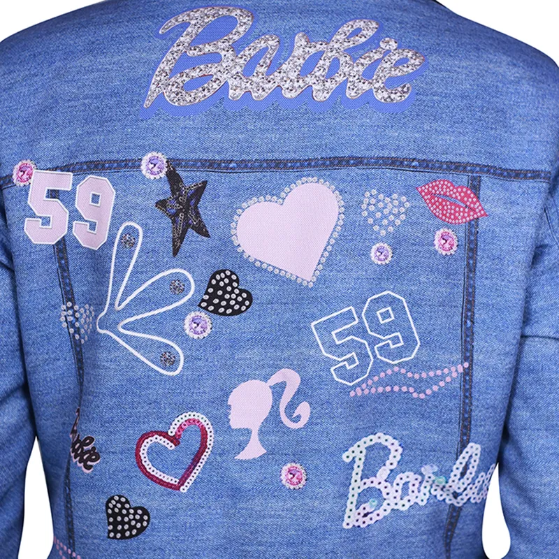 Show your iconic style with the Barbie x Unique Vintage Barbie Logo Kerstie Jean Jacket. This charming, blue fabric women’s denim jacket is a must-have piece for any collector or fashion enthusiast. Perfect for stylish layering, this jacket features the signature Barbie Logo, making it an ideal unique vintage Barbie collection piece. Stand out with this fashionable women’s blue denim jacket with Barbie logo, blending classic denim comfort with timeless doll-inspired flair. Shop this jacket today for a touch of vintage cool.