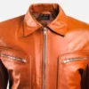 Men’s Brown Leather Jacket with Zip Pocket