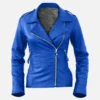 Blue Women Biker Leather Jacket
