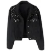 Black Women Embroidered Pearls Beading Jacket