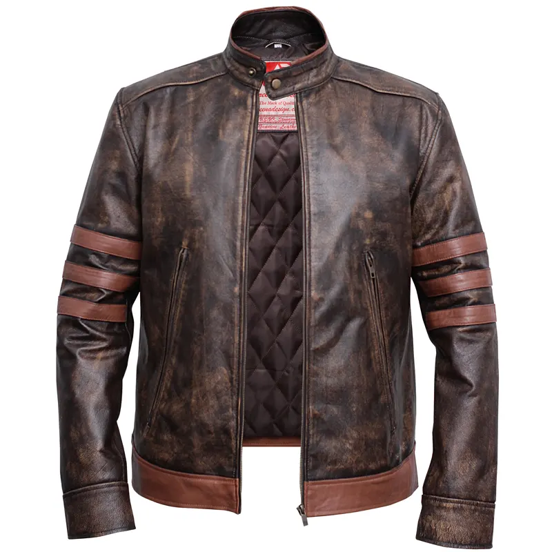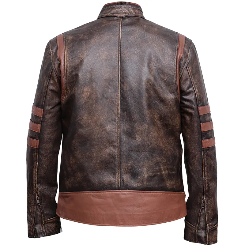 Channel your inner hero with the X-Men Origins Wolverine Leather Jacket. This men’s brown leather jacket, inspired by Hugh Jackman, is the ultimate Wolverine cosplay jacket and biker wear.