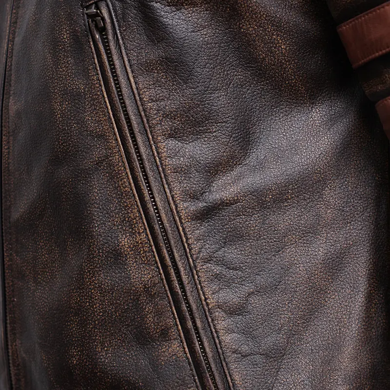 CARE: To maintain the beauty of your leather bags and jackets, regularly clean them with a soft cloth and use a quality leather conditioner to keep them supple and protected from moisture.